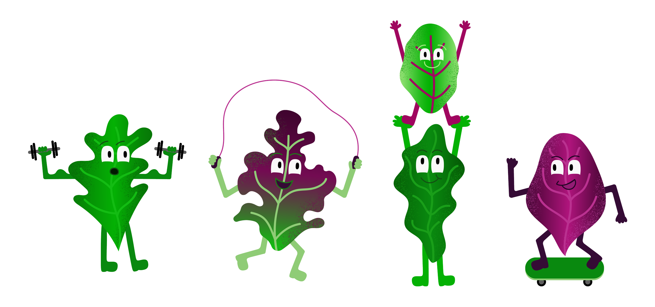 The Dream TeamLettuce character illustrations for Dream Harvest, a sustainable indoor farm. Agency: Good Stuff Partners