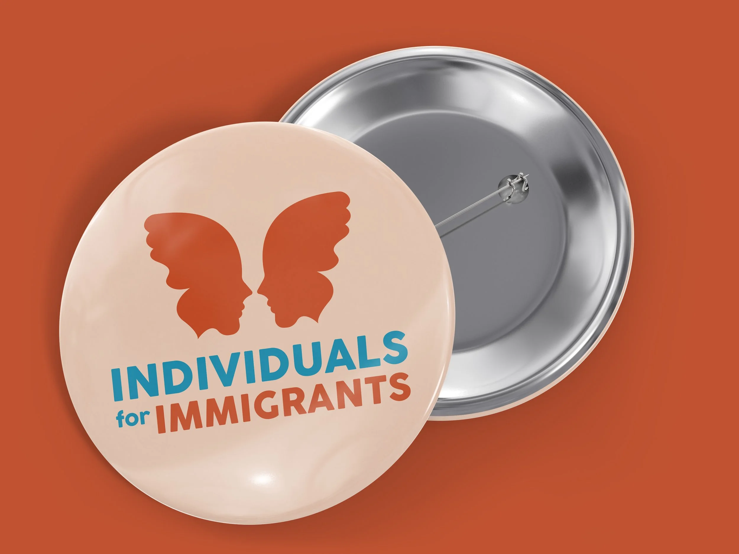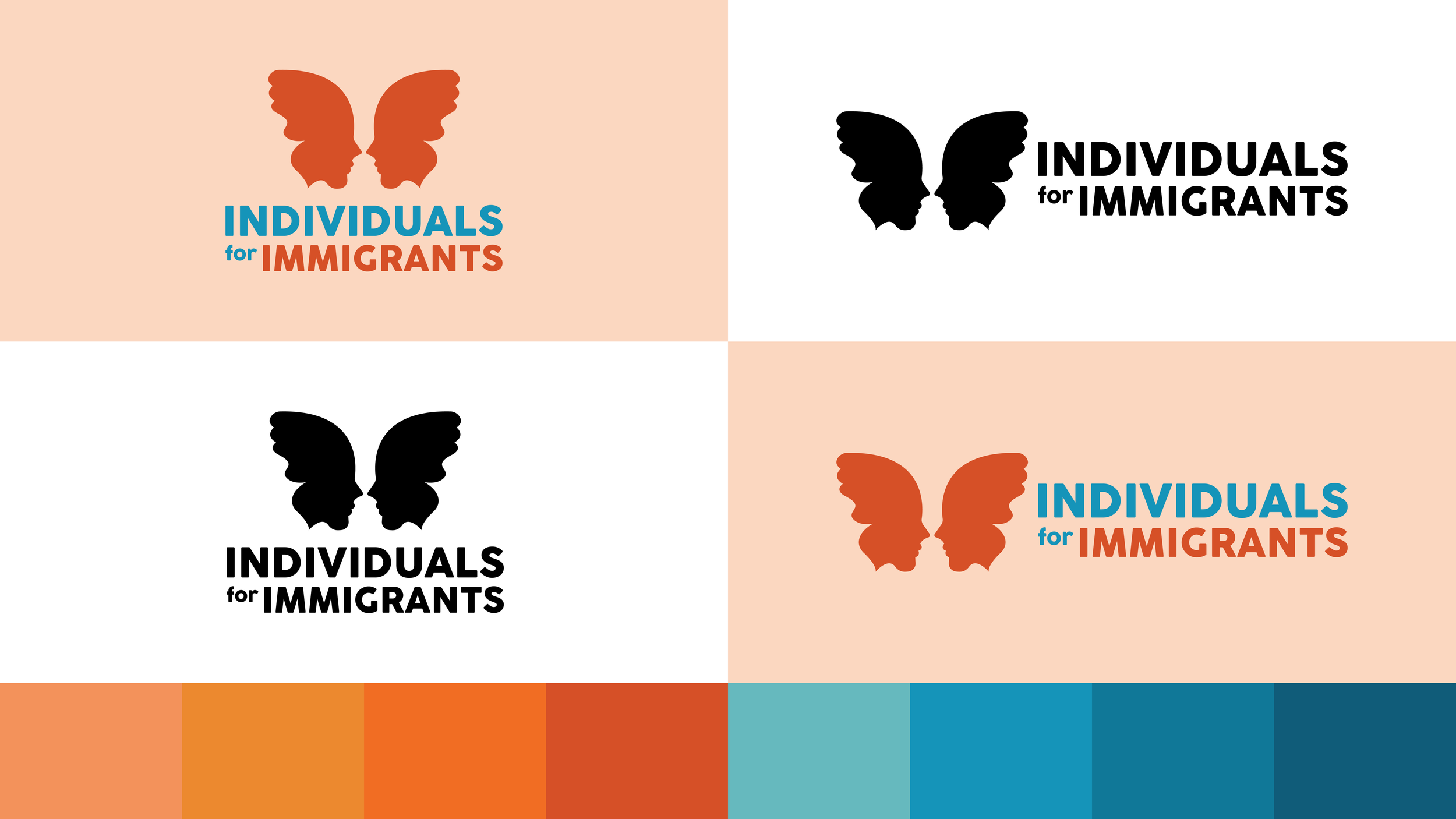 The logo depicts two faces facing each other in the wings of a butterfly. While the name βIndividuals for Immigrantsβ separates the individual as someone the nonprofit needs to help immigrants, the logo reminds us we are one and the sameβmimicking the symmetry of butterfly wings.