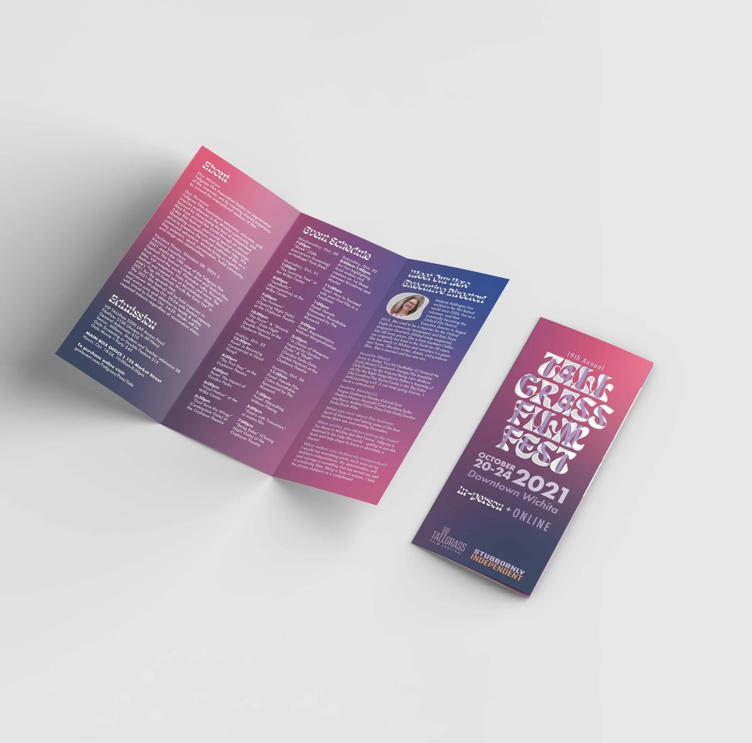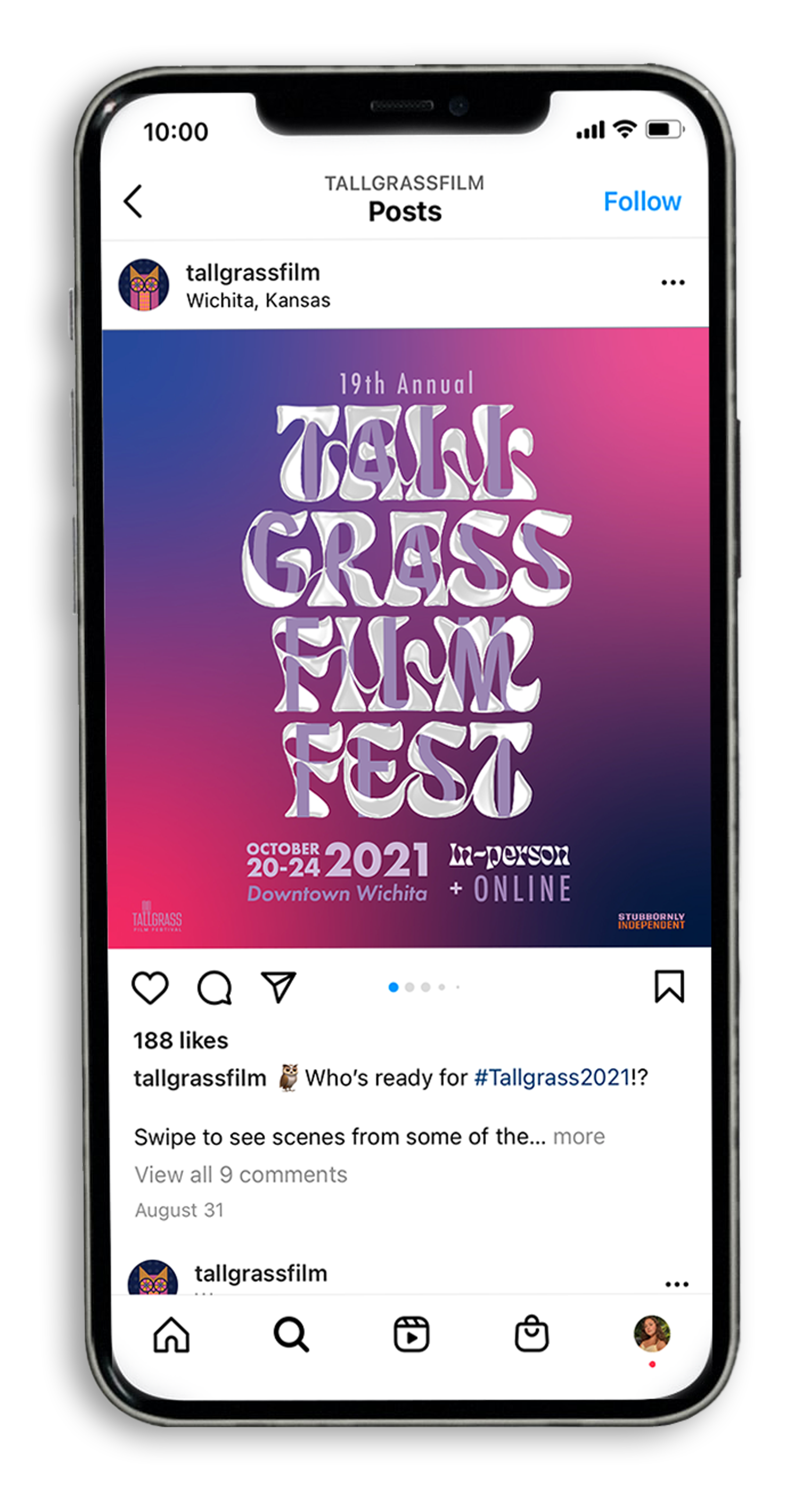 The visual identity for this campaign highlights the Tallgrass Film Festivalβs shift to a hybrid model that film festival attendees will see for years to come. The fluid, organic type represents the in-person community, while the static, sans-serif type represents the online community. These two typefaces are intertwined to show a literal βcoming togetherβ and connection between communities. The design has references to Retrofuturism, a movement that blended retro and futuristic stylesβsimilar to how Tallgrass is merging their festival into an in-person and online model. Ultimately, this campaign delivers visual connection through two contrasting typefaces to communicate the concept of hybrid and engage in-person and online communities.